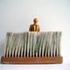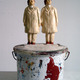 Die plastischen Arbeiten sind aus Terrakotta, glasiert, mit Porzellanfarbe bemalt und gebrannt, oder es ist eine dünne Metallschicht aufgebrannt und dann patiniert worden, um einen Bronzeeffekt zu erhalten. Dies gilt nicht für die Assemblagen. Die folgen immer der Idee und sind sozusagen Einzelstücke.